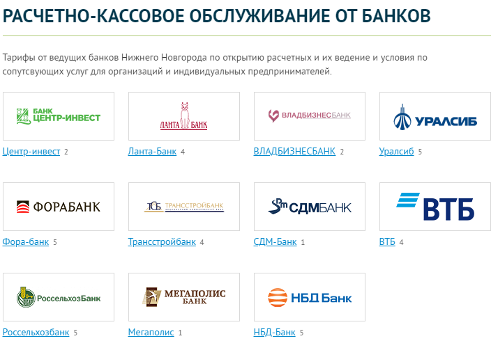 Информация о тарифах на расчетно-кассовое обслуживание в Нижнем Новгороде