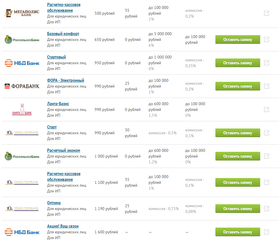 НАЙДЕНЫ 209 ТАРИФОВ ПО РКО